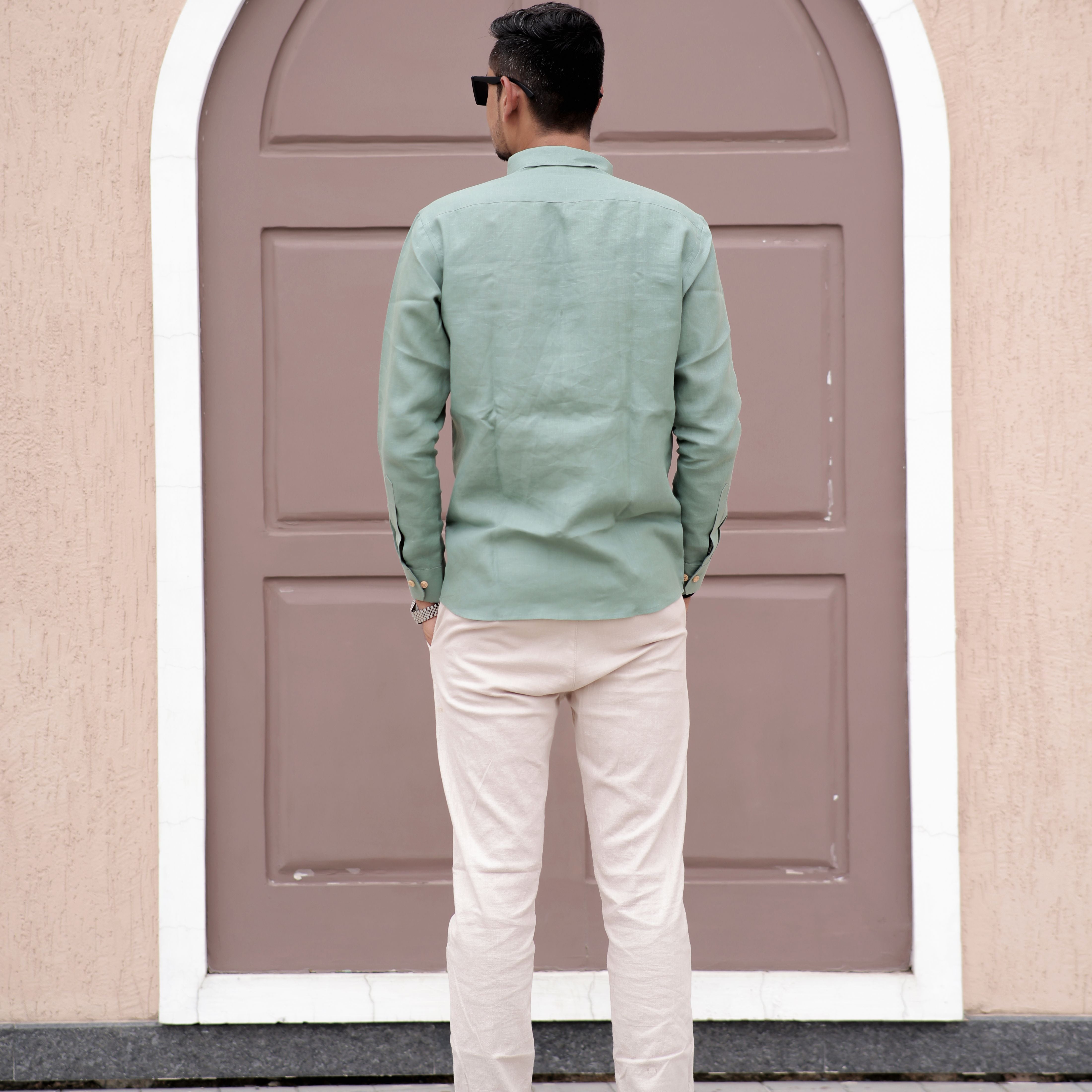 Full Sleeve Pure Linen Forest Mist Green Comfort Shirt